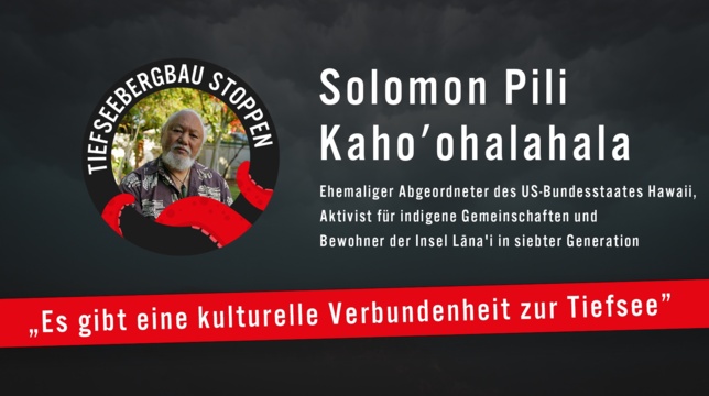 Die Tiefsee hat für ihn und seine indigene Gemeinschaft eine zentrale Bedeutung – ihre Kultur und ihre Lebensgrundlagen hängen eng mit den Tiefen der Meere zusammen. Dennoch werden die Stimmen der Indigenen in Diskussionen über Tiefseebergbau nicht beachtet. Die Regierungen der Welt müssen die Tiefsee – das gemeinsame Erbe der Menschheit – schützen und Tiefseebergbau stoppen, bevor er beginnt.