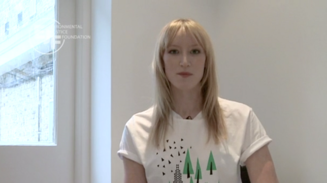 KT Tunstall's message at the photoshoot for the Climate Week T-shirt in support of EJF's No Place Like Home campaign.